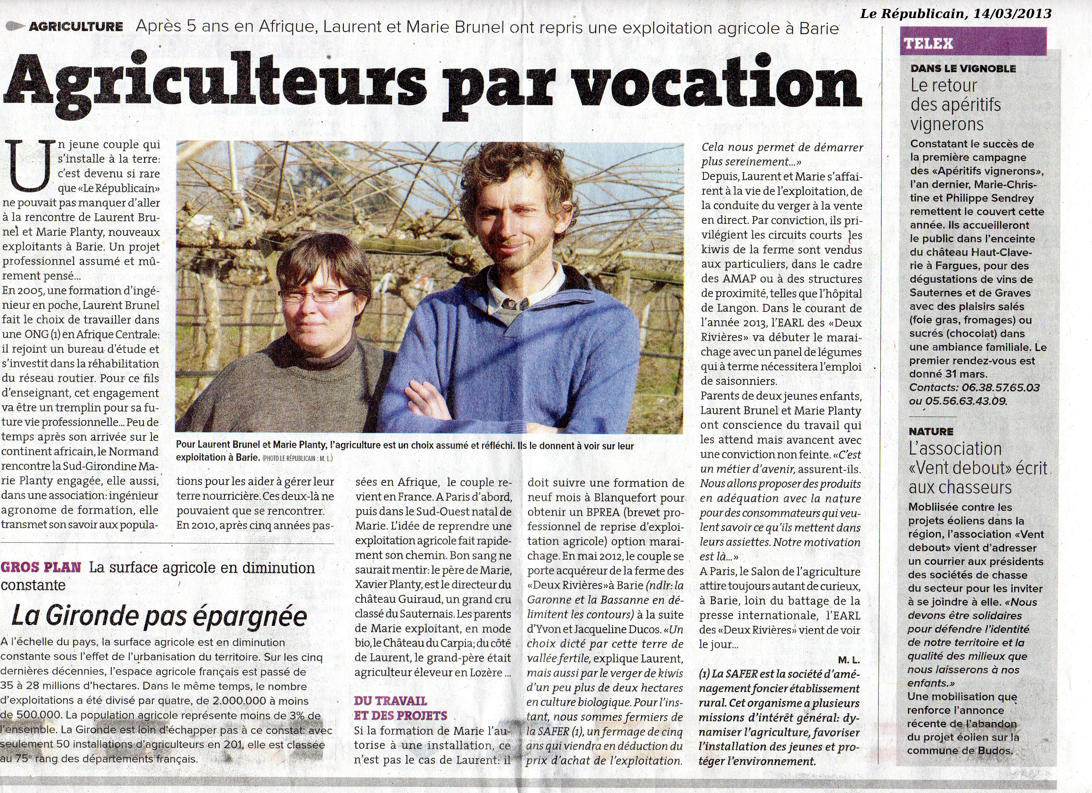 http://lafermedes2rivieres.fr/wordpress/ Une présentation du couple dans l'hebdo "Le Républicain" :
