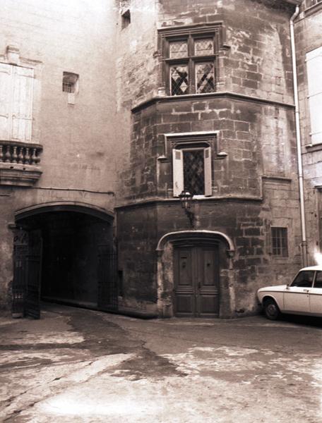 Portail sur rue, y compris la colonnette qui le surmonte à gauche ; passage et son plafond ; tourelle d'escalier (extérieur et intérieur) sise à l'angle Sud de la première cour : inscription par arrêté du 23 juin 1952