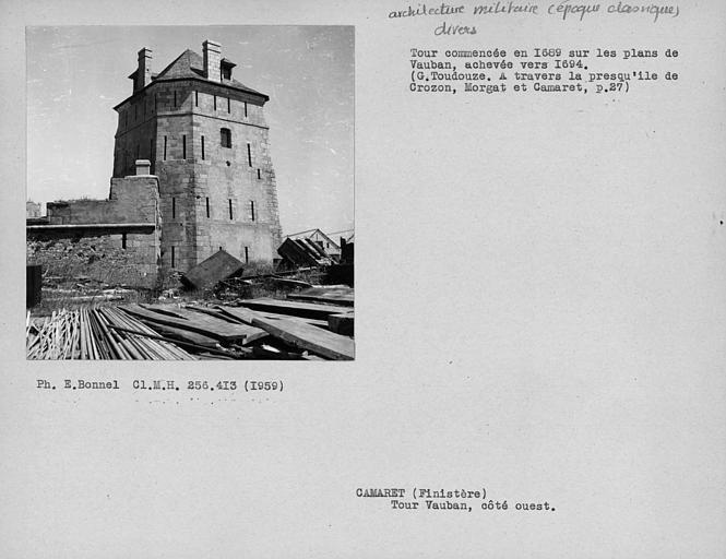 Au début de l'année 1689, craignant une attaque sur Brest, Louis XIV envoya Vauban qui ordonna la construction d'un certain nombre d'ouvrages, dont un fortin à Camaret. L'ouvrage est une construction hexagonale, contenant des salles voûtées. Aux deux extrémités de la batterie semi-circulaure et dallée qui s'étend au pied de la tour, s'élèvent un four à boulets rouges et un corps de garde dont les meurtrières défendent l'accès... suite