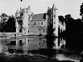 Le château paraît appartenir majoritairement au 15e siècle. Il se compose de deux bâtiments disposés en équerre. La porte d'entrée principale, en ogive, est flanquée de deux tourelles élevées en encorbellement sur des contreforts, et reliées à la partie supérieure par un chemin de ronde à mâchicoulis. Deux tours polygonales accompagnent les autres bâtiments. La construction est entièrement en schiste, sans aucune décoration... suite