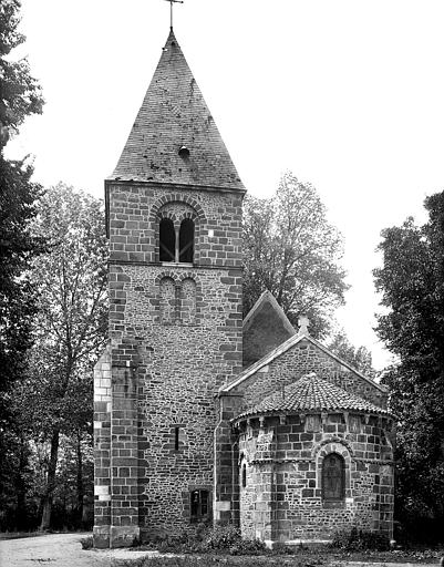 Eglise romane à nef unique voûtée en berceau plein cintre, séparée du choeur par deux colonnes portant un épais doubleau. Le choeur présente une abside demi-circulaire. Le clocher est accolé au sud du choeur. De plan presque carré, il est percé, sur les faces de deux étages, d'arcatures géminées séparées par de fines colonnettes. La façade est ornée d'un petit porche dont l'arc est légèrement brisé.