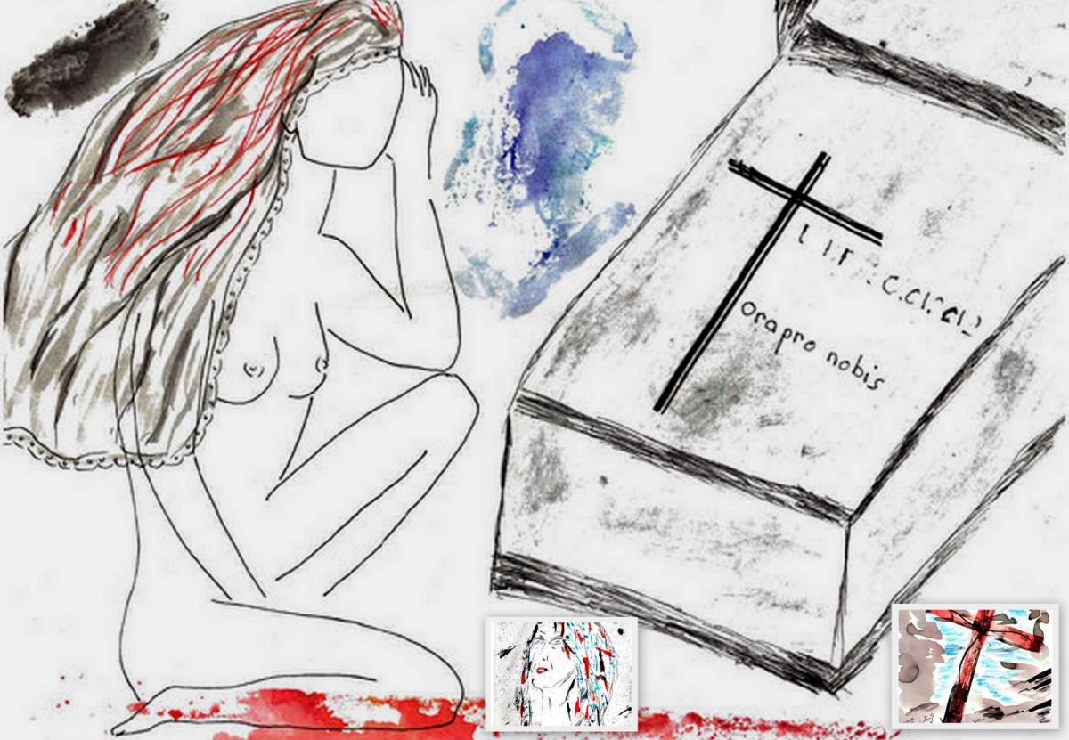 Au travers de deux couleurs, de feu et de sang pour le rouge, de mort et de deuil pour le noir, à qui s'adresse donc cet « ora pro nobis » (Priez pour nous) ? Est-ce les morts qui le sollicitent des vivants ? Ou est-ce cette femme, symbolisant probablement toutes les mères du monde face à l'indicible, la mort brutale de leurs enfants, demandant au monde des vivants de prier pour (sur) lui-même en quelque sorte, face au malheur de la guerre (c'est, hélas, toujours d'actualité). La tache de bleu ajoutée au fond blanc, et le rouge donc, auraient peut-être aussi tendance à en suggérer la cause : le patriotisme s'opposant, envers et contre tous, à l'envahisseur, mais à quel prix ?