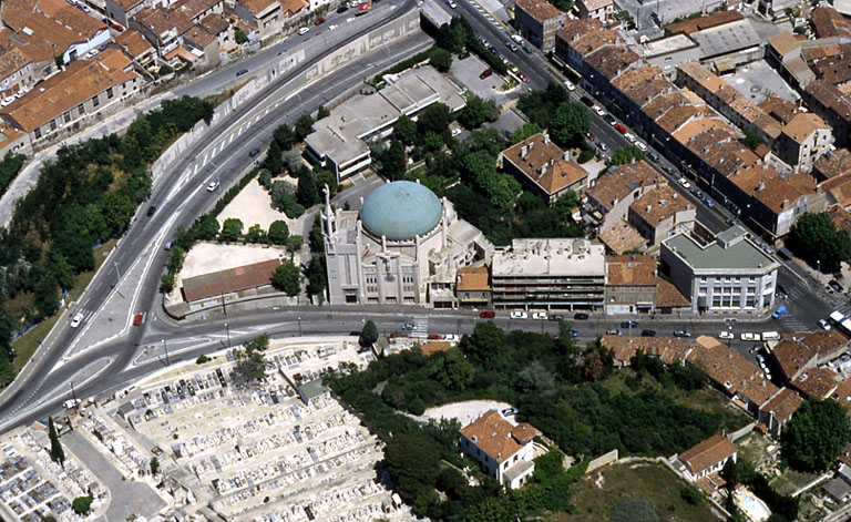 Eglise construite en 1935 par l'architecte Jean-Louis Sourdeau. L'urbanisation des banlieues entraîne dans ce quartier industriel la construction sur le même emplacement d'une église deux fois plus spacieuse que la précédente. La structure est en béton armé, avec une coupole en voile de béton et des pendentifs fictifs en brique creuse. Les sculptures en ciment sont l'oeuvre de Carlo Sarrabezolles.