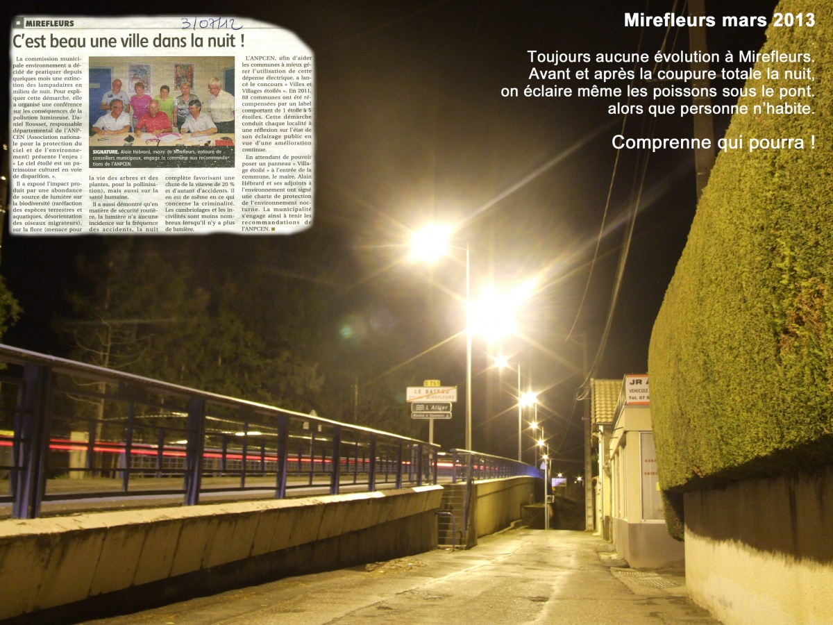 respect de l'écologie avec éclairage des poissons, mais coupure totale une partie de la nuit pour tous les habitants !