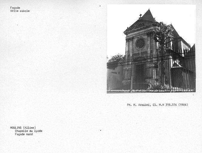 L'ancien couvent de la Visitation a été fondé par Mme de Chantal avant de devenir lycée et de subir des transformations. La chapelle de l'ancien couvent, devenue celle du lycée, est restée intacte et constitue avec le choeur des religieuses attenant, un exemple unique en Bourbonnais de l'art architectural et décoratif du 17e siècle. La façade de la chapelle du lycée, ainsi que l'intérieur, sont d'ordonnance classique ; la... suite