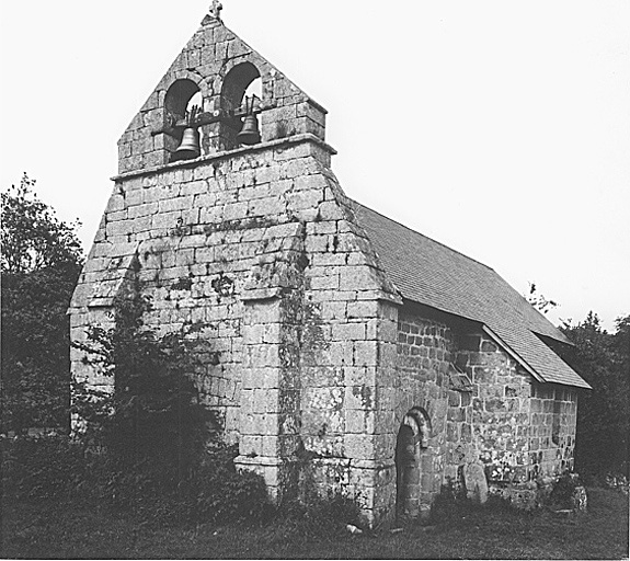 Eglise rurale du 12e siècle, modifiée au 14e. Le monument primitif comprenait un choeur rectangulaire à chevet plat, une nef de deux travées carrées, un petit portail sur la façade sud décoré d'une archivolte à gros boudin torique reposant sur des colonnettes disparues, et d'une seconde archivolte carrée retombant sur deux demi colonnes engagées avec chapiteau et bases primitives, formant feuillure de porte. Au 14e siècle,... suite