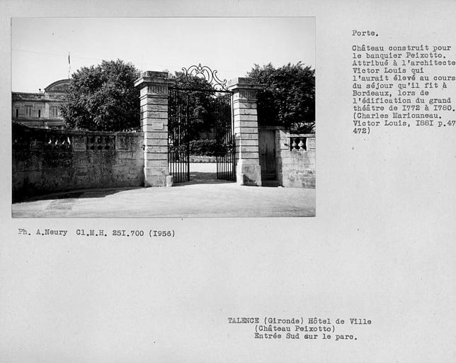 Si vous souhaitez poser une question ou rédiger un message concernant ce monument historique, rendez-vous sur la page de la ville de Talence.